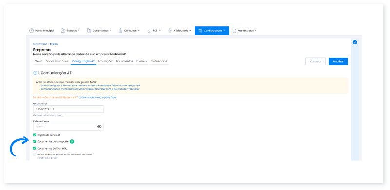 É possível ativar a sua conta para comunicar à Autoridade Tributária os documentos emitidos em tempo real.