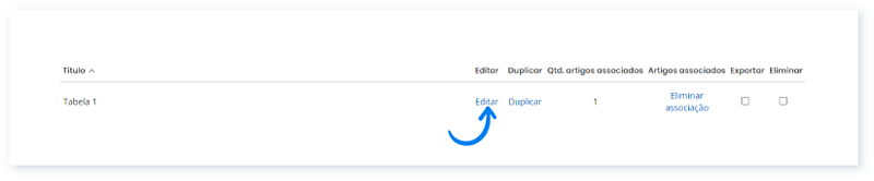 2. Na listagem encontra as tabelas de preços adicionadas. Clique em Editar na tabela pretendida.