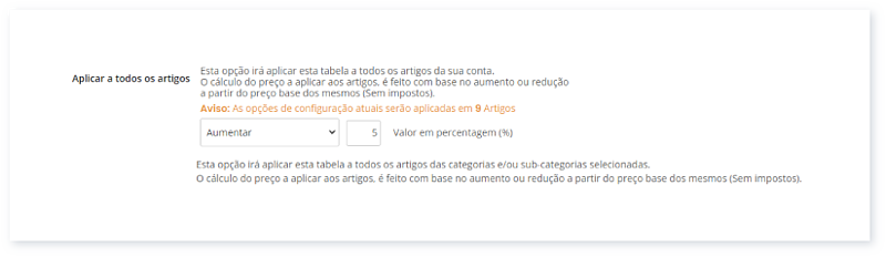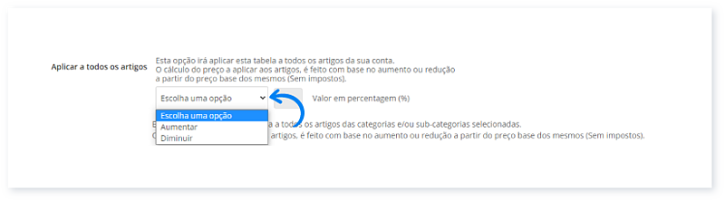 4. Em Aplicar a todos os artigos, selecione Aumentar ou Diminuir.