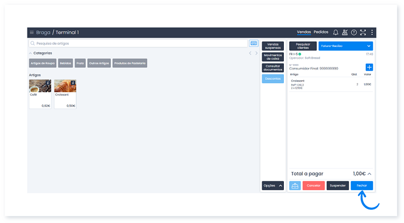 Pode utilizar o botão Data e hora atual para inserir automaticamente a data e hora do momento em que efetua a venda.