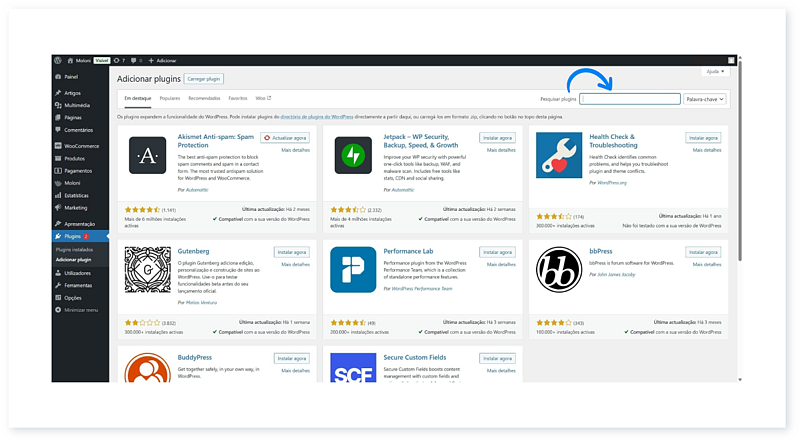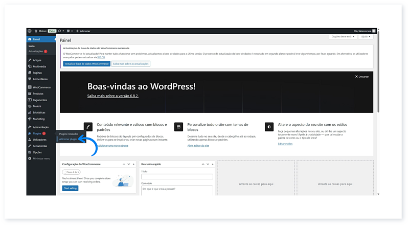 1. No painel Wordpress, aceda ao separador Plugins e clique em Adicionar plugin.