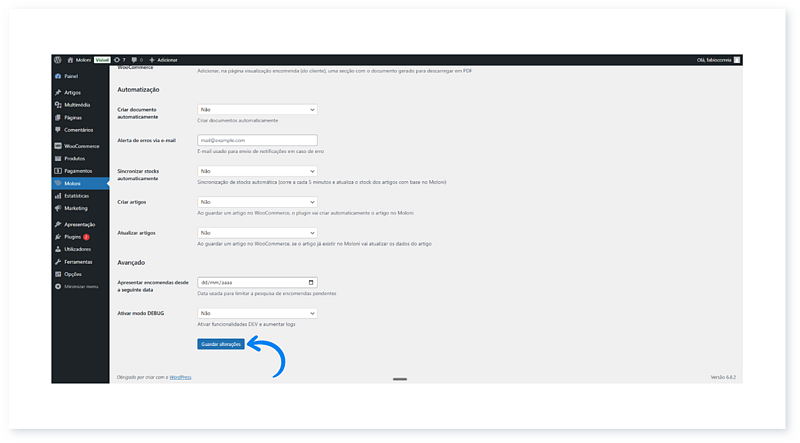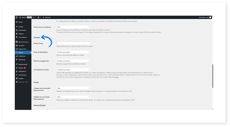 13. De seguida, clique no separador Moloni.