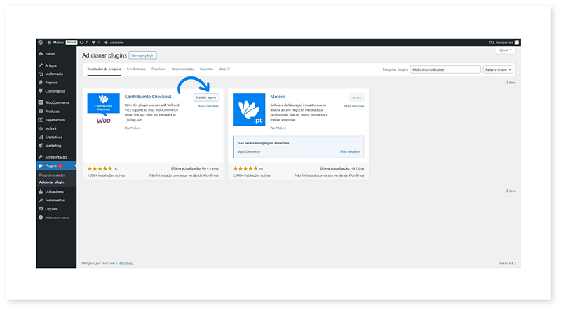 3. Clique no botão Instalar agora. A instalação deste plugin permite adicionar o campo Contribuinte às suas encomendas e validar o mesmo.