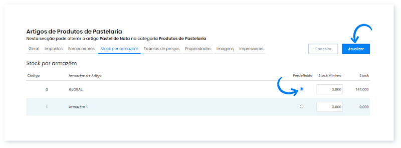 Quando inserir um artigo num documento, este é o armazém a aparecer por defeito. Saiba mais sobre este assunto neste Guia.