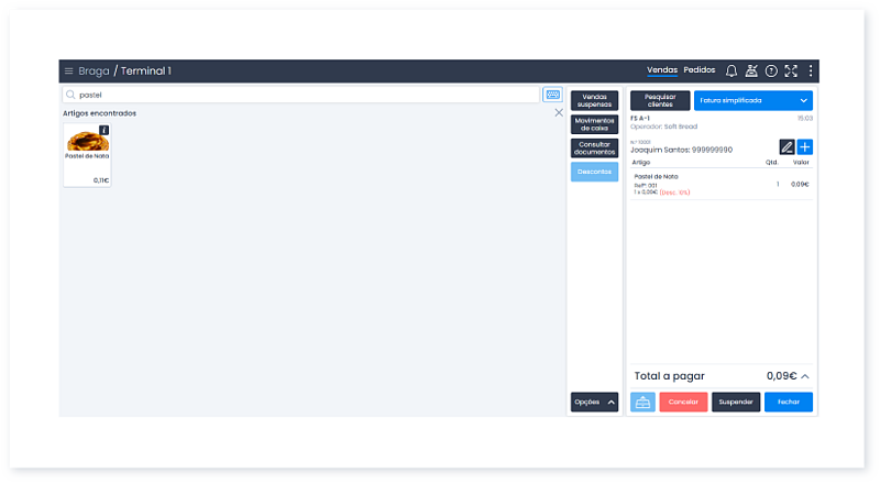4. De seguida, crie o documento no POS e adicione o artigo. Como poderá reparar, o valor aplicado corresponde à tabela de preços definida nas configurações do terminal.