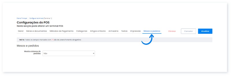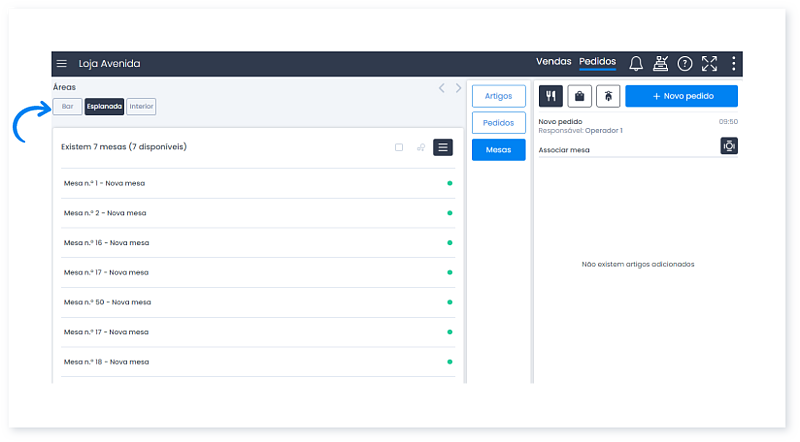 Para poder utilizar as suas áreas e mesas no POS deve: