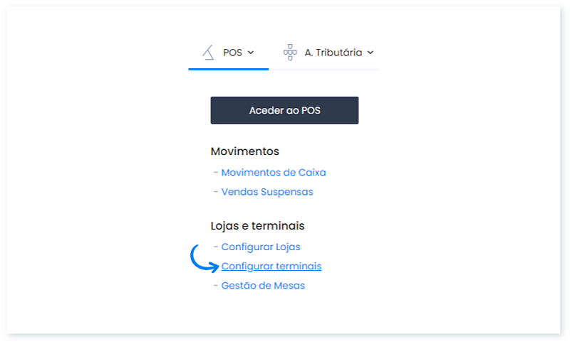 1. Na sua área de cliente, aceda ao menu POS e clique em Configurar Terminais.