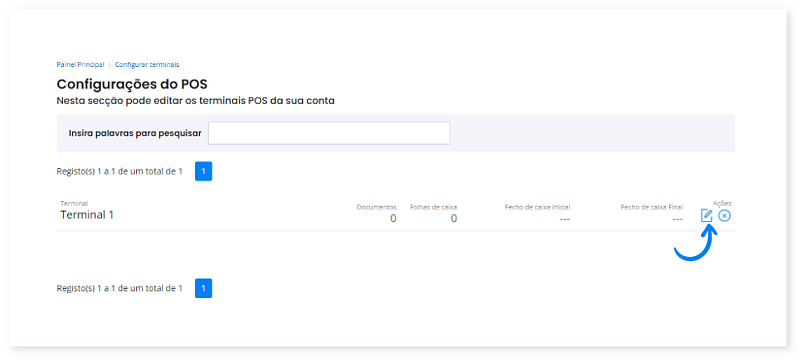 2. Clique no botão editar terminal do terminal pretendido (no qual pretende utilizar o sistema de pedidos).