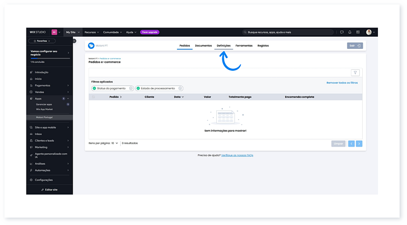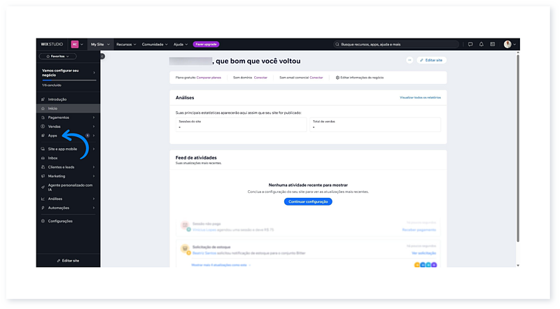 1. Na plataforma Wix, aceda ao menu lateral e clique em Apps.