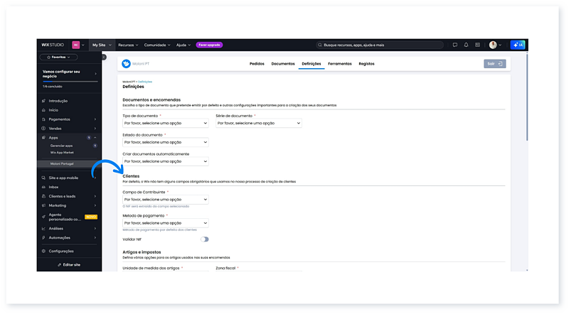 4. Na secção Clientes, no Campo de Contribuinte selecione o campo que corresponderá ao contribuinte. O NIF será extraído do campo selecionado.