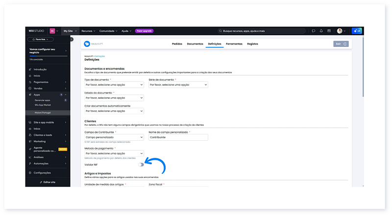 6. Pode optar por ativar a validação do NIF inserido. Caso seja inserido um NIF inválido, o campo contribuinte é preenchido com 999999990 (Consumidor Final). Para isto, basta ativar a opção Validar NIF.