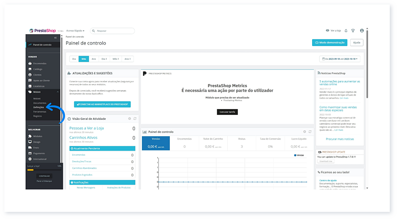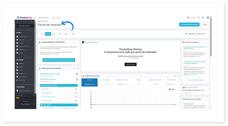 1. Aceda ao Painel de controlo do Prestashop.