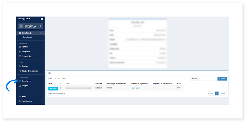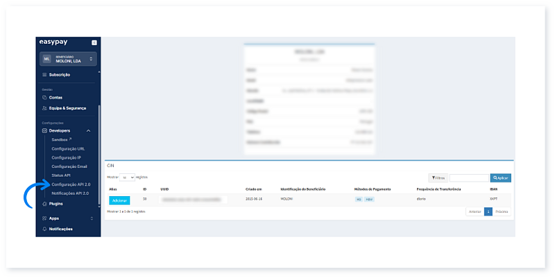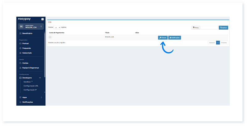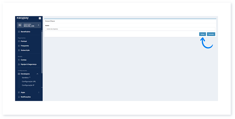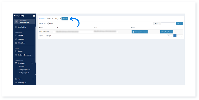 Para configurar o serviço easypay é necessário obter uma chave de autenticação para aceder à API.