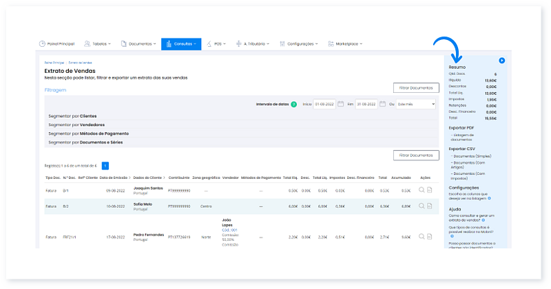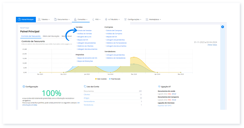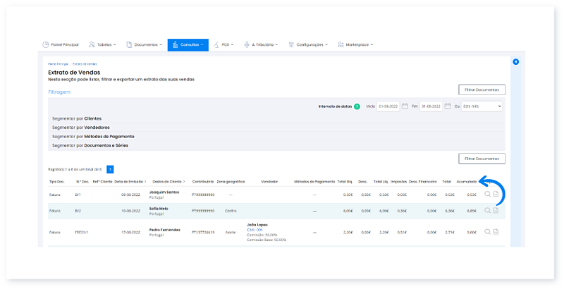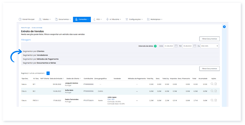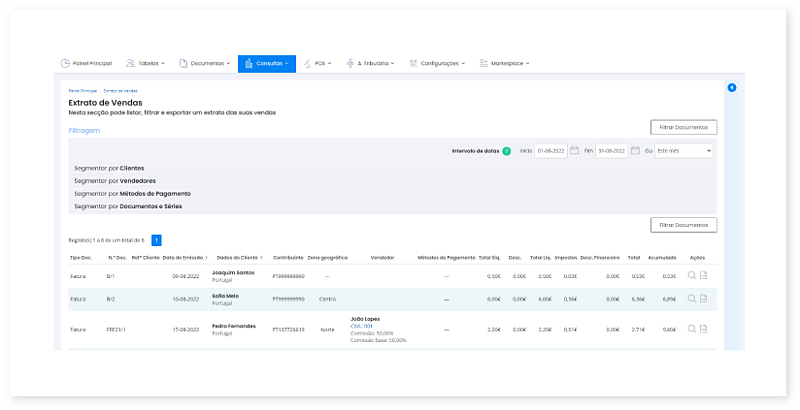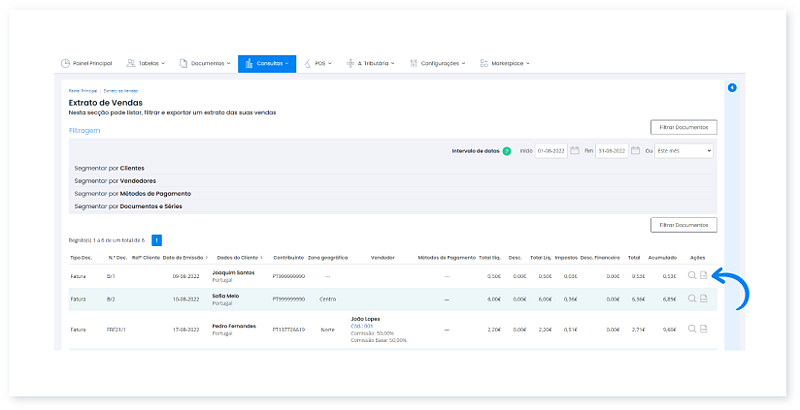 1. Aceda ao menu Consultas e clique na opção Extrato de Vendas.