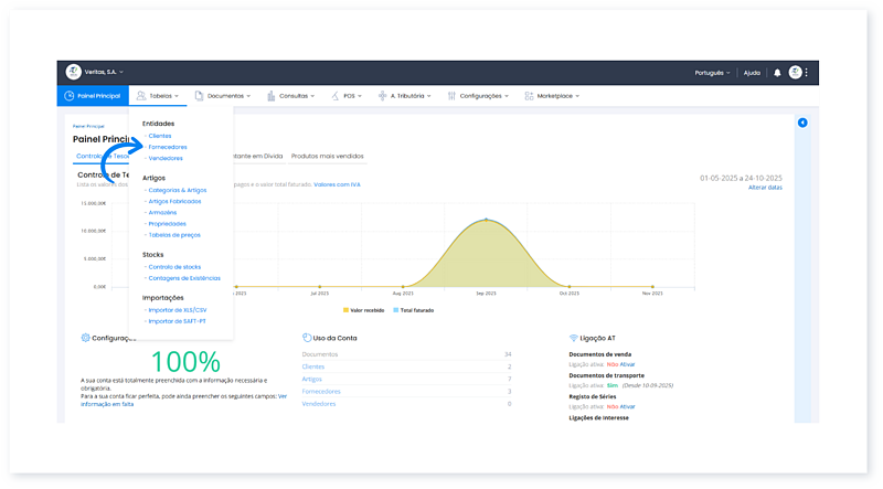 1. Aceda à Área de Cliente e, no menu Tabelas, clique em Fornecedores.