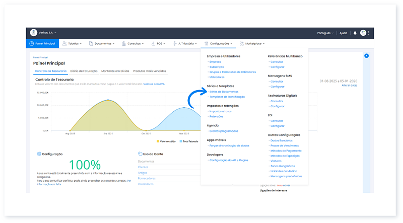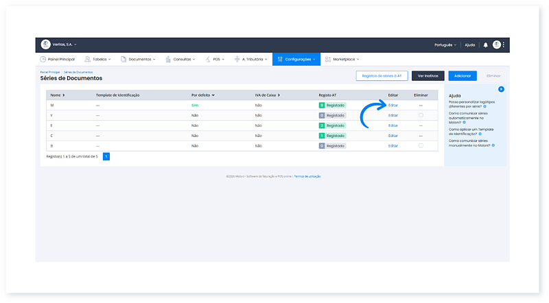- Aceda ao menu Configurações e clique em Séries de Documentos.