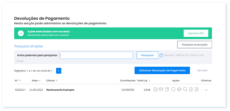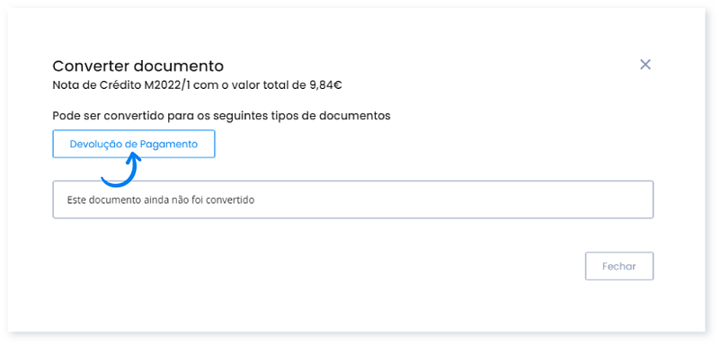 Antes de emitir uma Devolução de Pagamento, certifique-se que está perante uma das situações descritas neste Guia. Tal como é indicado, a maneira correta de emitir uma devolução é a partir da conversão de uma Nota de Crédito numa Devolução de Pagamento. Siga os passos: