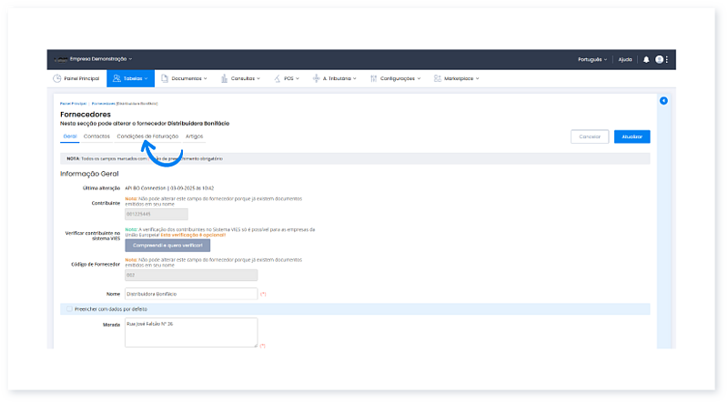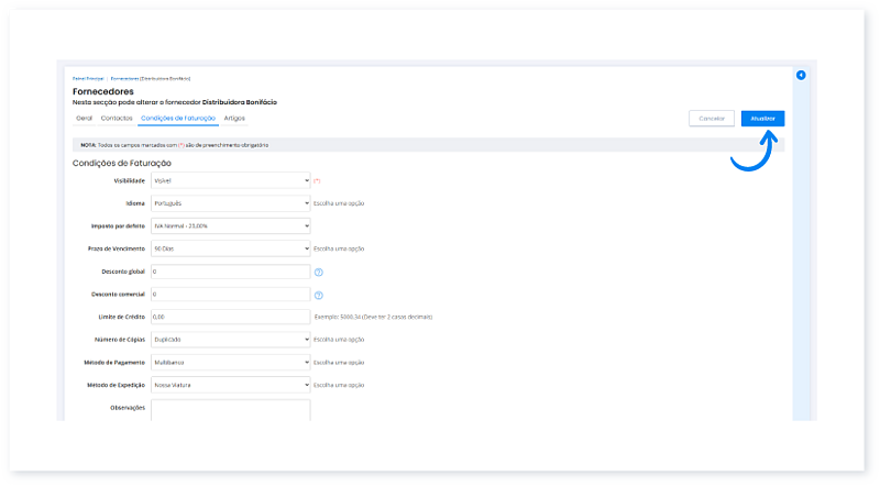 3. De seguida, clique em Condições de Faturação.