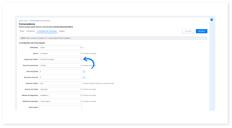 Como especificar um imposto por defeito a um fornecedor?