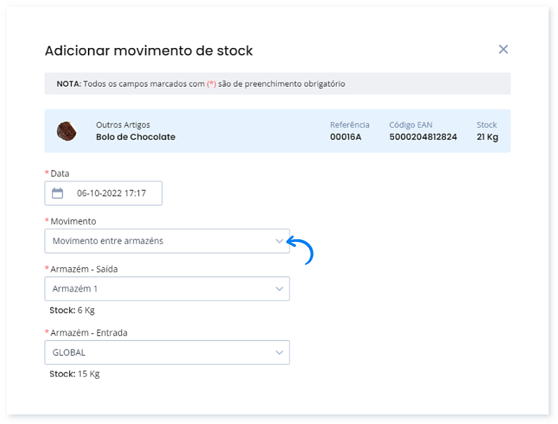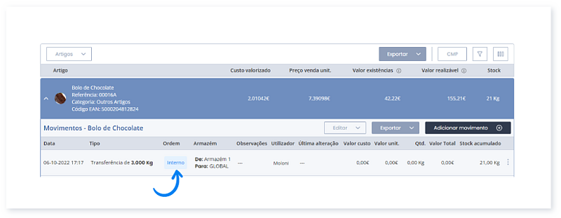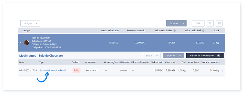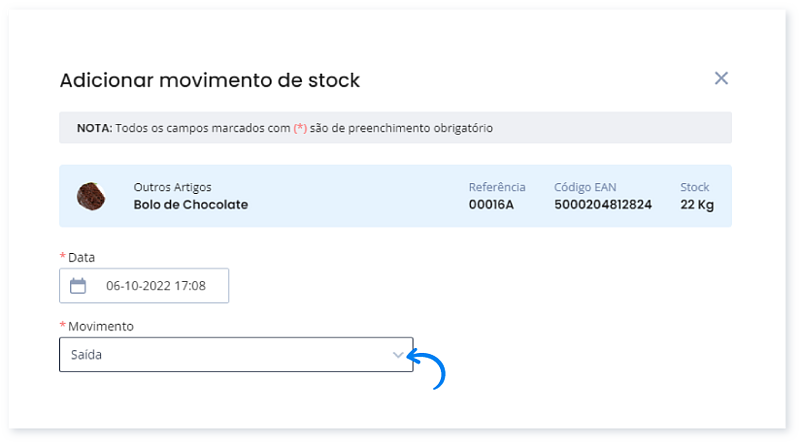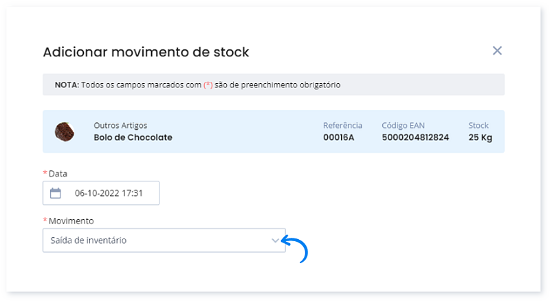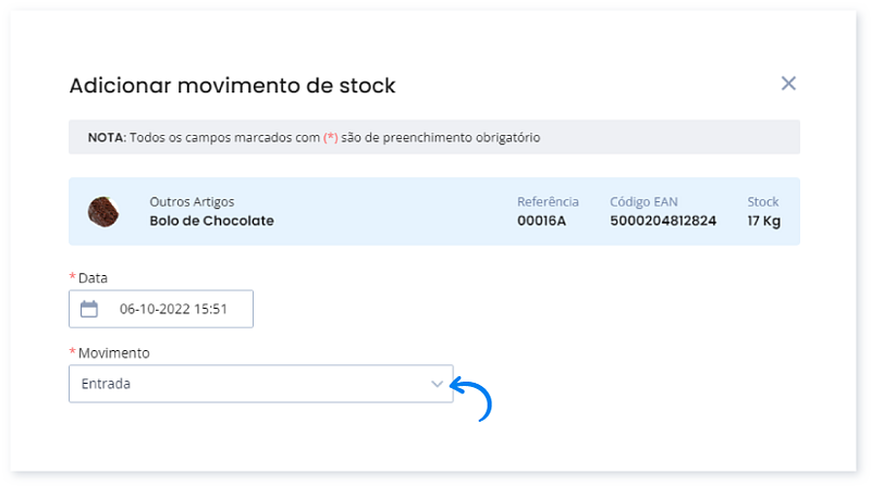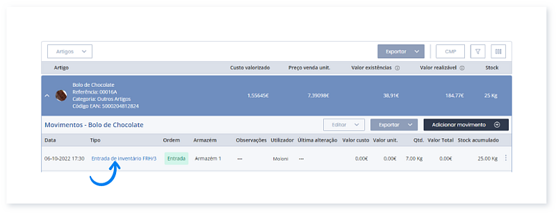 Para saber como adicionar um movimento de stock manual, consulte este Guia.