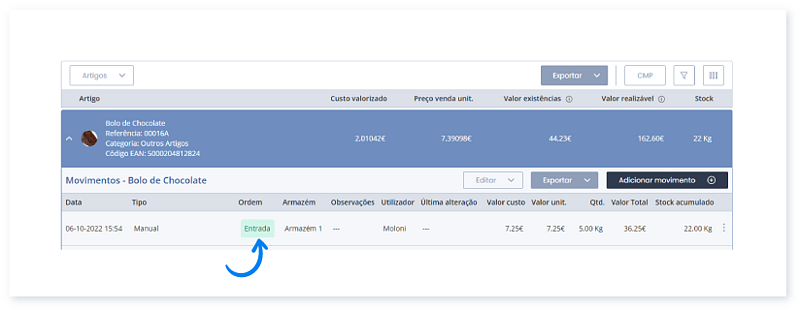 Entrada - Este movimento representa uma entrada de stock do seu artigo.