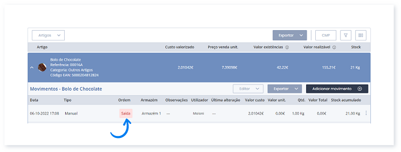 Saída - Este movimento representa uma saída de stock do seu artigo.
