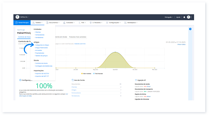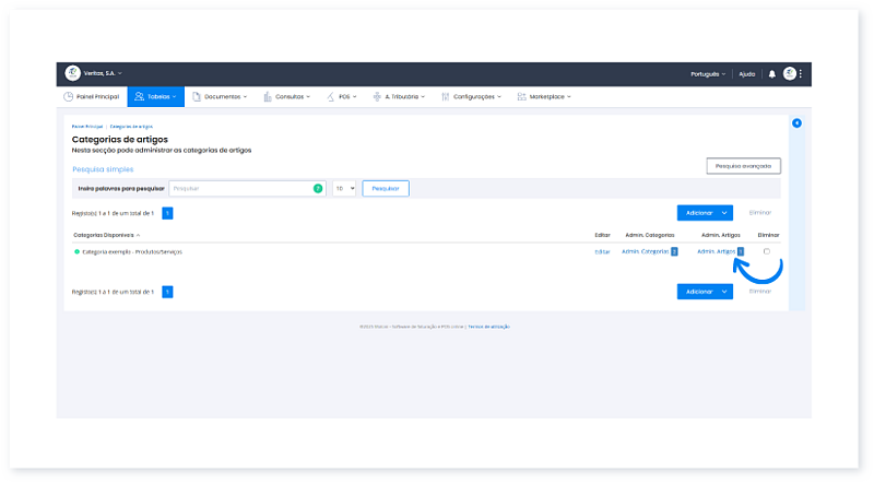 - Aceda à Área de Cliente, e no menu Tabelas, clique em Categorias e Artigos.
