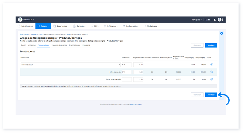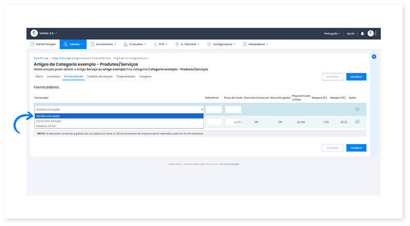 Pode associar um ou mais fornecedores a cada artigo. Os fornecedores a associar têm de estar previamente registados na sua conta Moloni.