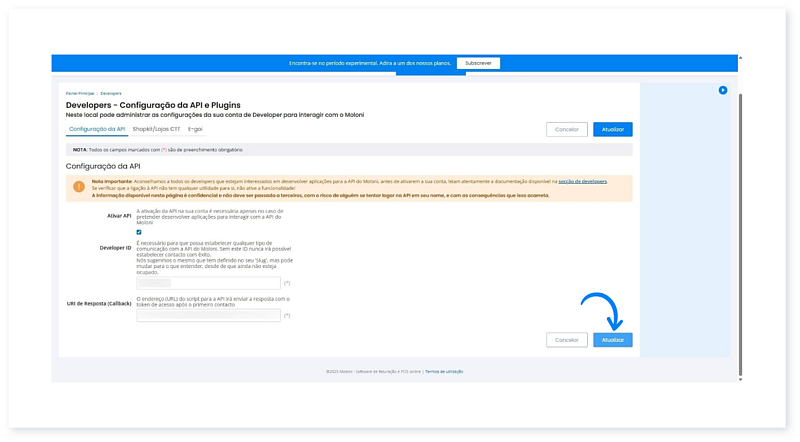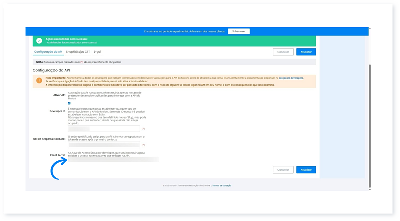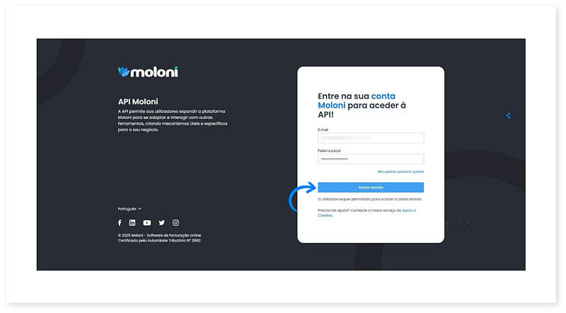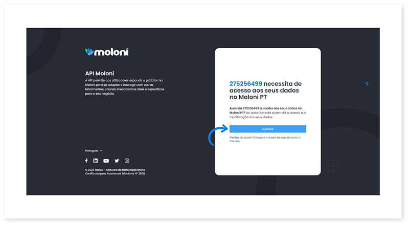 O próximo passo é configurar a app Moloni, siga este Guia.