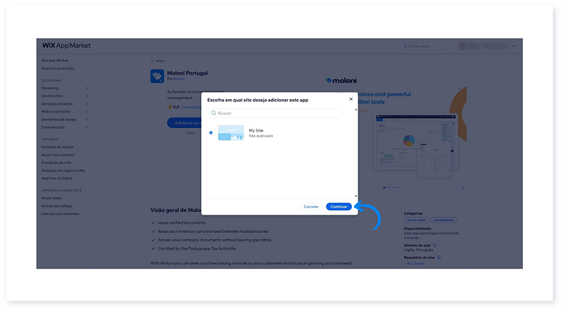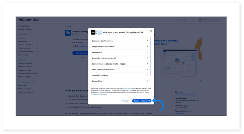 Instalar a app Moloni na plataforma Wix é fácil, prático e sem complicações.