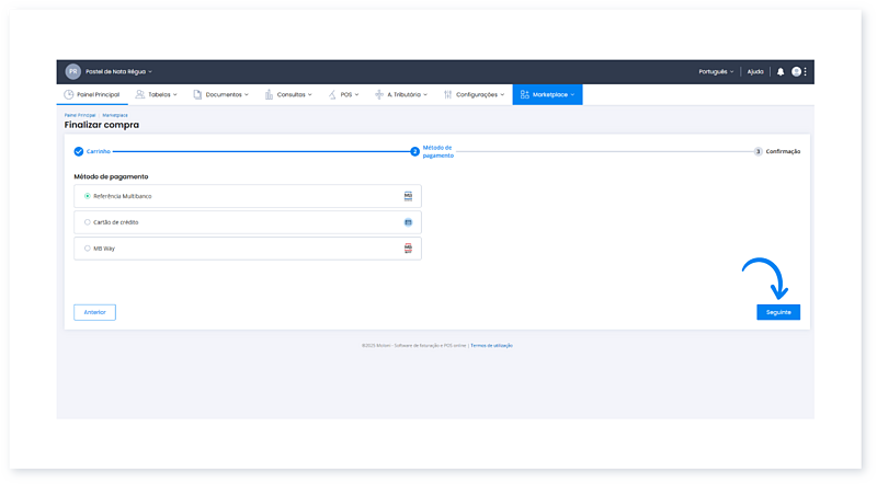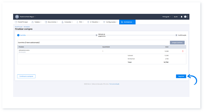 4. Para confirmar a compra clique no botão Seguinte.