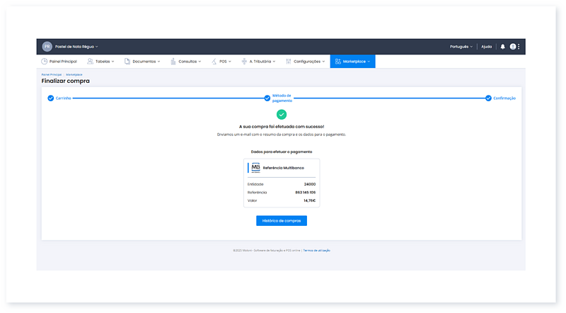 7. A compra foi efetuada com sucesso. Aceda ao e-mail para verificar os dados de pagamento.