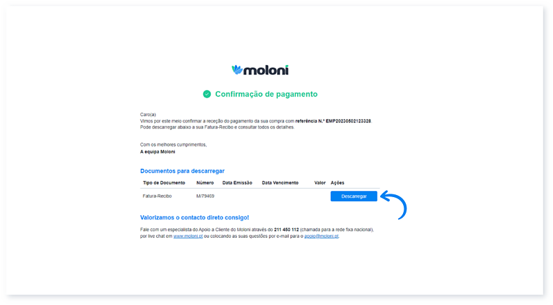 8. Realize o pagamento. Após a receção do pagamento, recebe um e-mail de confirmação de pagamento com a Fatura-Recibo.