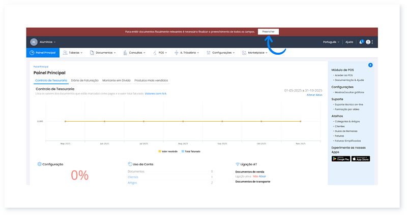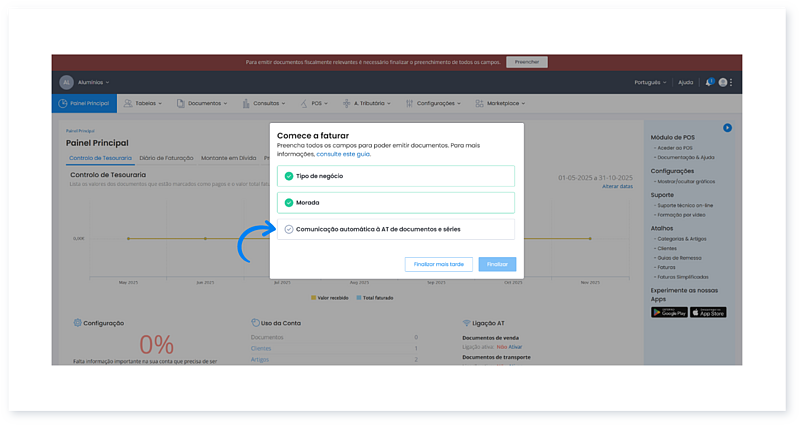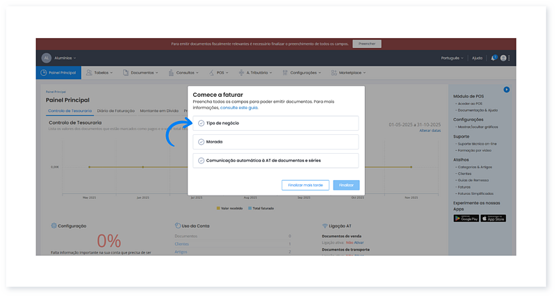 Para começar a emitir um documento fiscalmente relevante, deve configurar na sua conta: