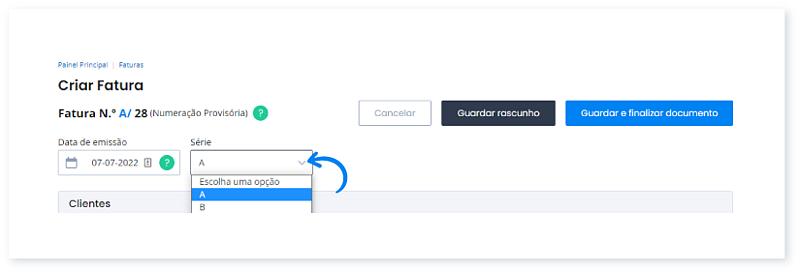 4. Volte à caixa de seleção do campo Série e pode ver que as séries foram trocadas pelas que não têm este regime ativo. Escolha a que pretende e preencha o resto do documento.