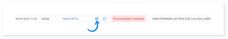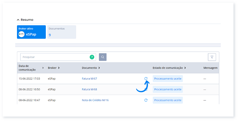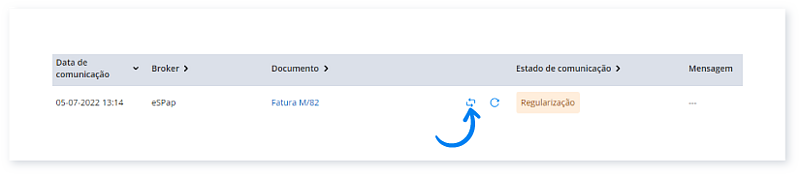3. Pode atualizar o estado de comunicação de qualquer documento previamente comunicado, clicando no ícone.