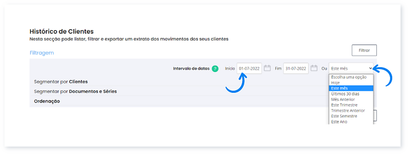 Siga os passos para saber como filtrar o histórico de clientes: