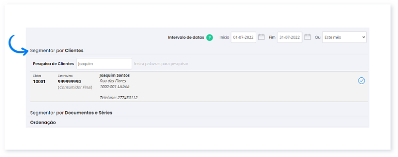 2. Em Segmentar por Clientes, pode selecionar os clientes pretendidos.