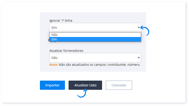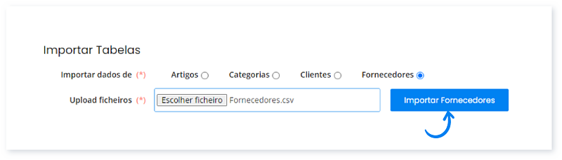 Importar fornecedores a partir de um ficheiro XLS, XLSX ou CSV