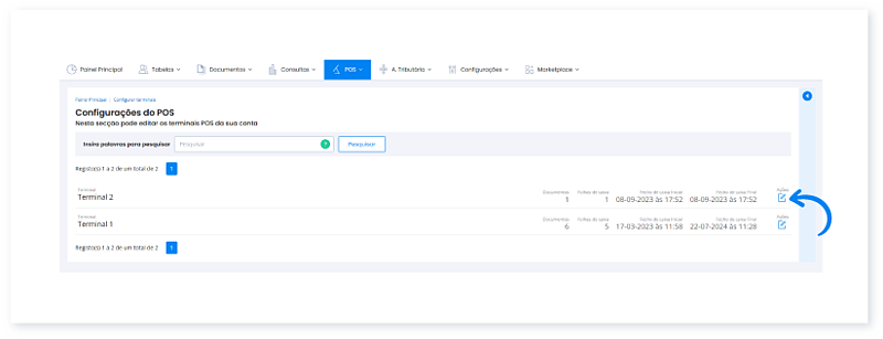 2. Nesta secção, encontra todos os terminais POS que fazem parte da sua empresa. Edite o terminal pretendido.
