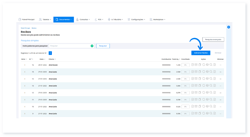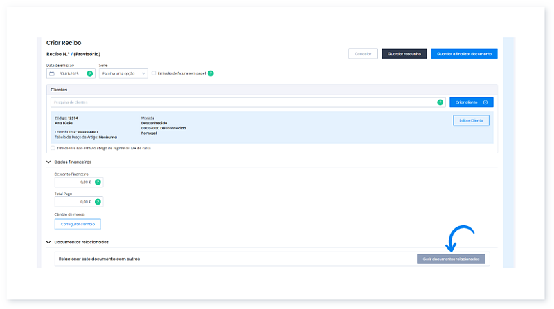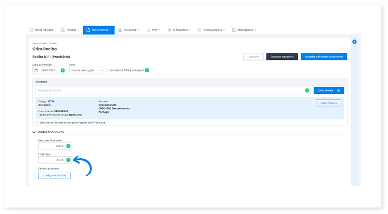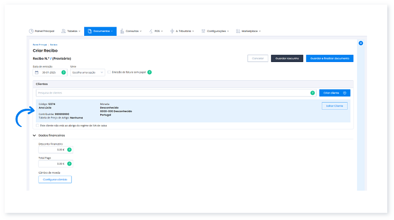 3. Insira o cliente ao qual pretende emitir o recibo.