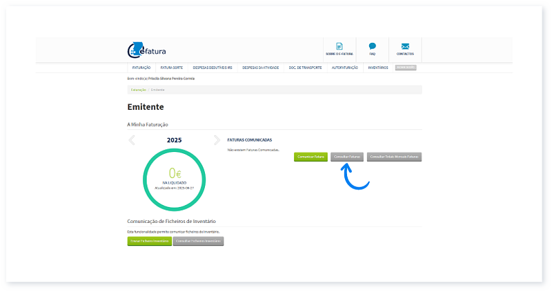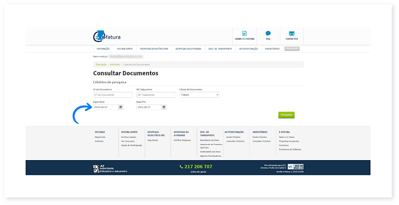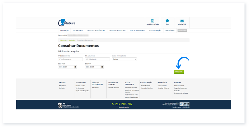 Para confirmar os documentos que o Moloni enviou para a AT em tempo real, deve aceder ao site e-fatura (do Portal das Finanças).