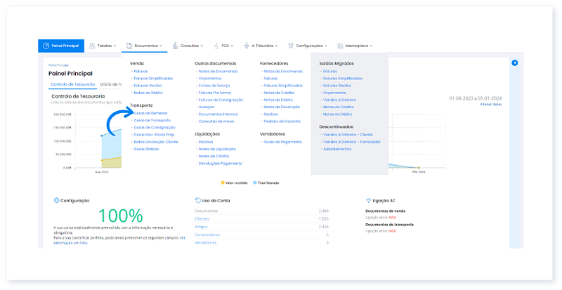 1. Aceda ao menu Documentos e selecione o tipo de documento de transporte pretendido.