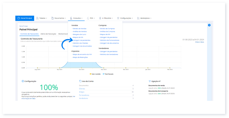 1. Aceda ao menu Consultas e clique em Listagem de Pendentes.