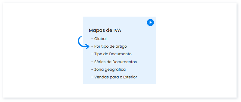 2. Na coluna lateral da listagem, encontra a secção Mapas de IVA. Clique em Por tipo de artigo.