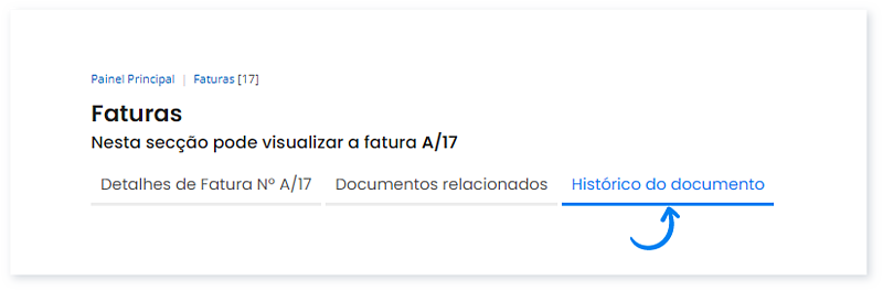 3. Encontra o separador Histórico do documento, que lhe mostra todos os eventos relacionados com o documento.