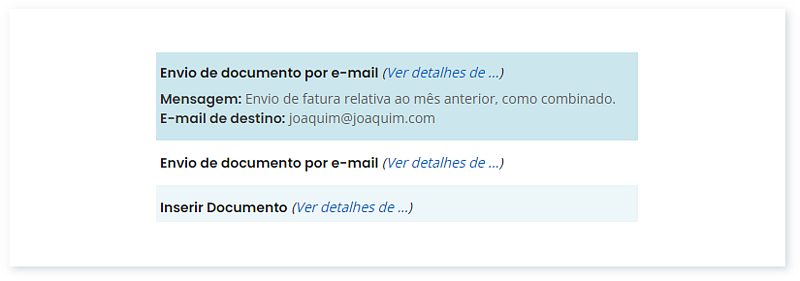 Como consultar os detalhes sobre o envio por e-mail de documentos?