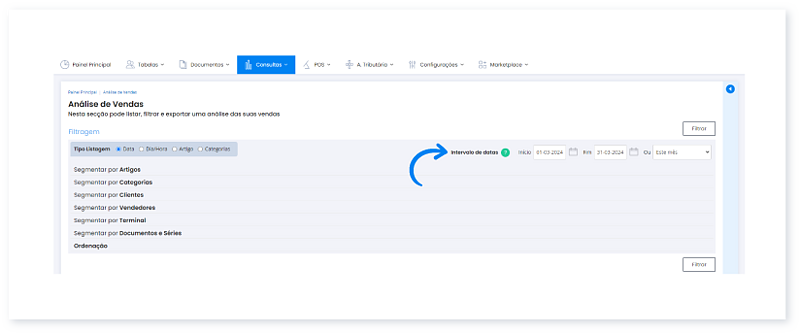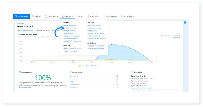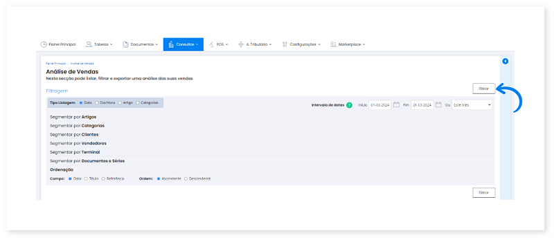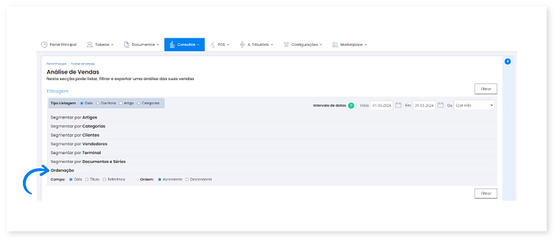 1. Aceda ao menu Consultas e selecione Análise de Vendas.