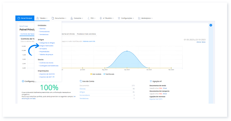 1. Aceda ao menu Tabelas e clique em Artigos Fabricados.