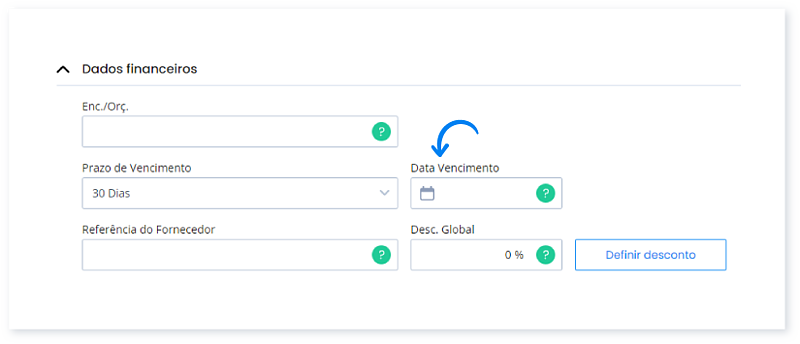 Em documentos cuja data de vencimento é opcional, é possível que não seja preenchida automaticamente.